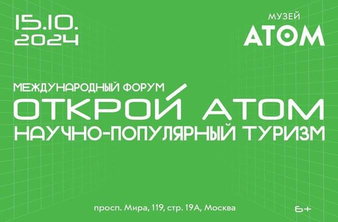 15 октября в Москве, в музее «Атом» на ВДНХ пройдет международный форум «Открой атом: тренды научно-популярного туризма». Соорганизаторами мероприятия выступят Российский союз туриндустрии, Всероссийский центр компетенций по профориентации, Агентство по развитию детского, молодёжного, семейного туризма, образовательных и инновационных практик.